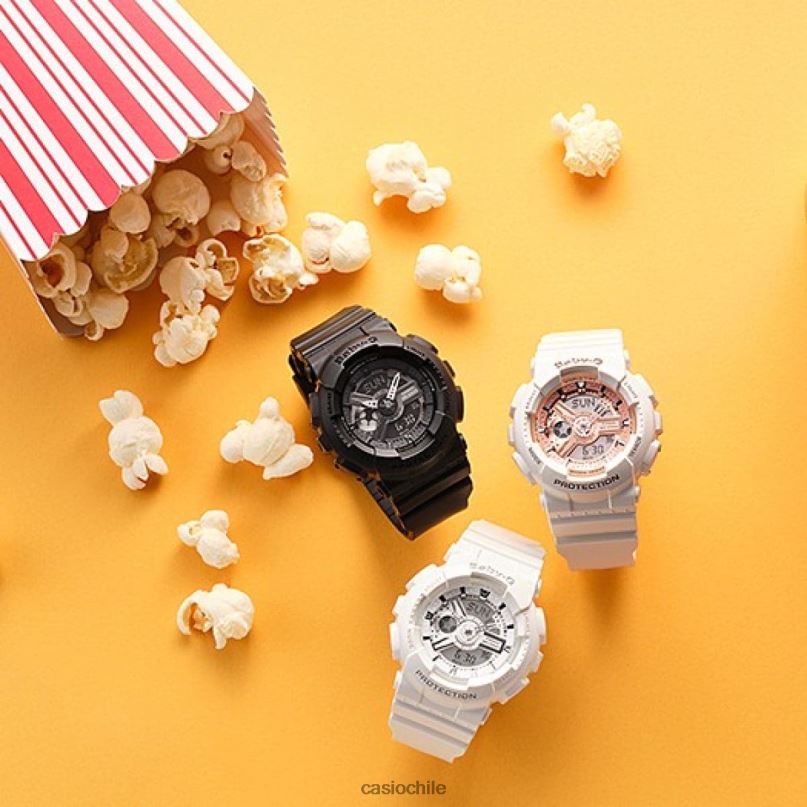 un modelo inspirado en el diseño del ga-110, un modelo popular de la serie g-shock big case. El ga-110 combina varias partes, como la esfera y los índices, de forma compleja. sus piezas inspiradas en engranajes y su esfera tridimensional crean una impresión mecánica compleja. Este modelo es más pequeño y delgado para adaptarse a una muñeca femenina y al mismo tiempo conserva la frescura de G-Shock. Los índices dispuestos tridimensionalmente están pintados con una capa metálica brillante para una textura refinada. esto le da al reloj una impresión nítida y enérgica. Los botones laterales son fáciles de pulsar y, por tanto, más prácticos. el baby-g, un reloj con una compleja esfera mecánica que le aporta personalidad y luce genial en el panorama de la moda callejera.