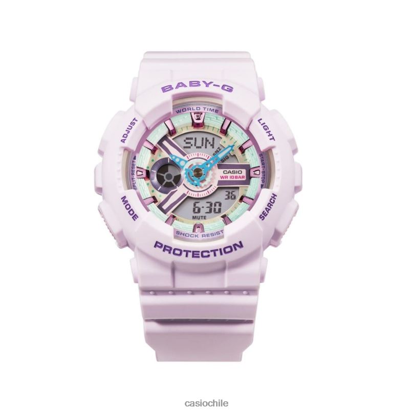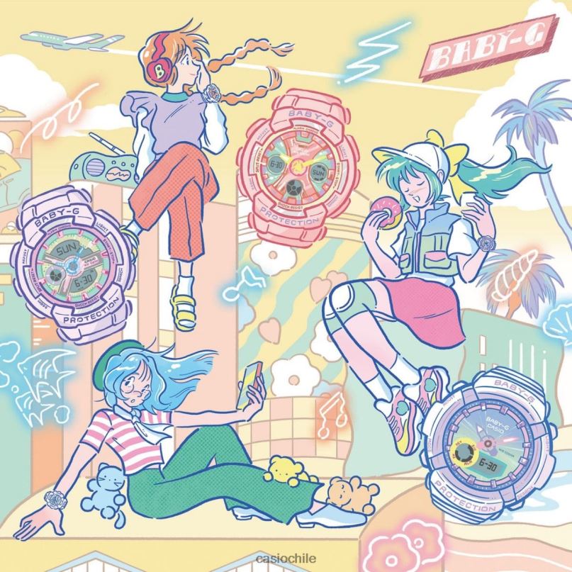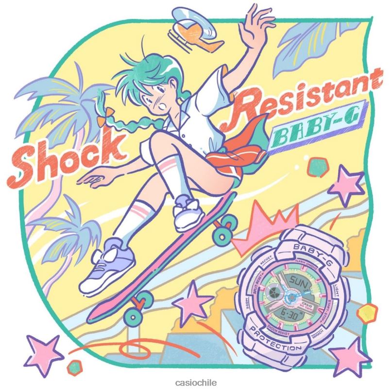 El pastel se une al metalizado: elige un baby-g multicolor lindo e informal para combinar con tu vida activa. Los bloques de color y las gradaciones en tonos pastel dan a estos modelos un toque femenino, con una amplia gama de tonos suaves que se combinan en un diseño encantador. Las manecillas, las marcas de índice y otros componentes de la esfera cuentan con un acabado metálico, lo que agrega un brillo exquisito y crea una combinación única con la caja y la correa mate. Más que bonitos, estos relojes también cuentan con una excelente funcionalidad diaria, con impactos. construcción resistente y resistencia al agua hasta 100 metros. Exprese su mística con este impresionante contraste de metal resistente y pasteles suaves.