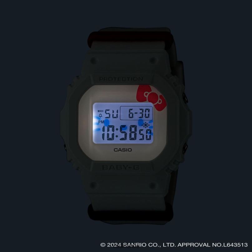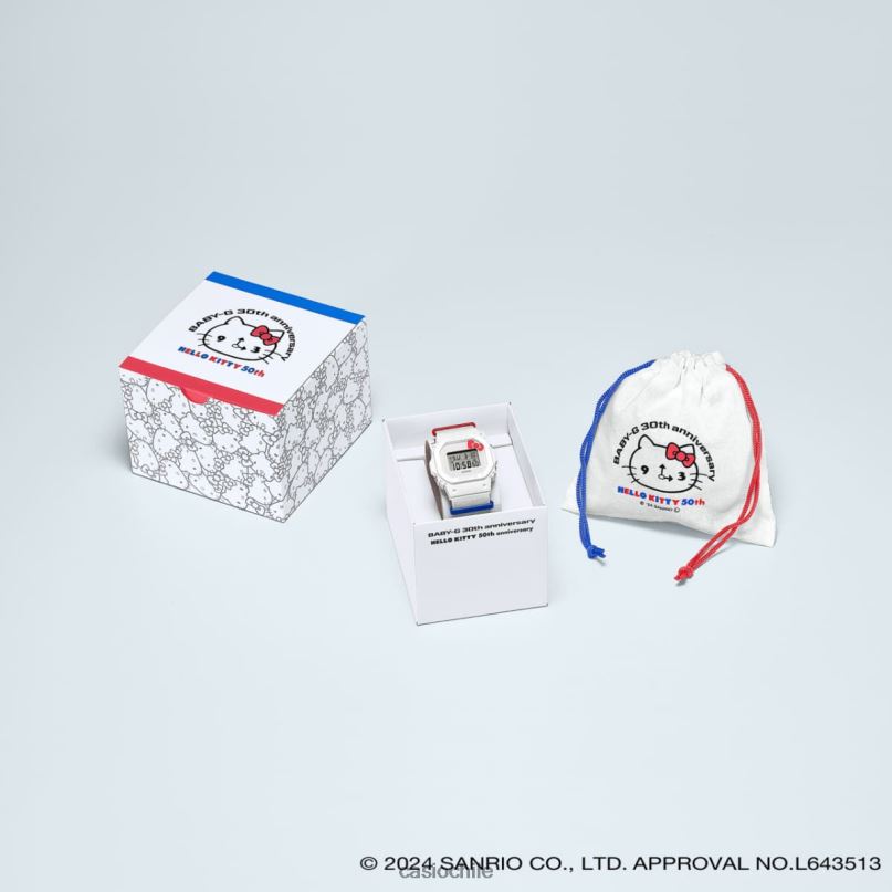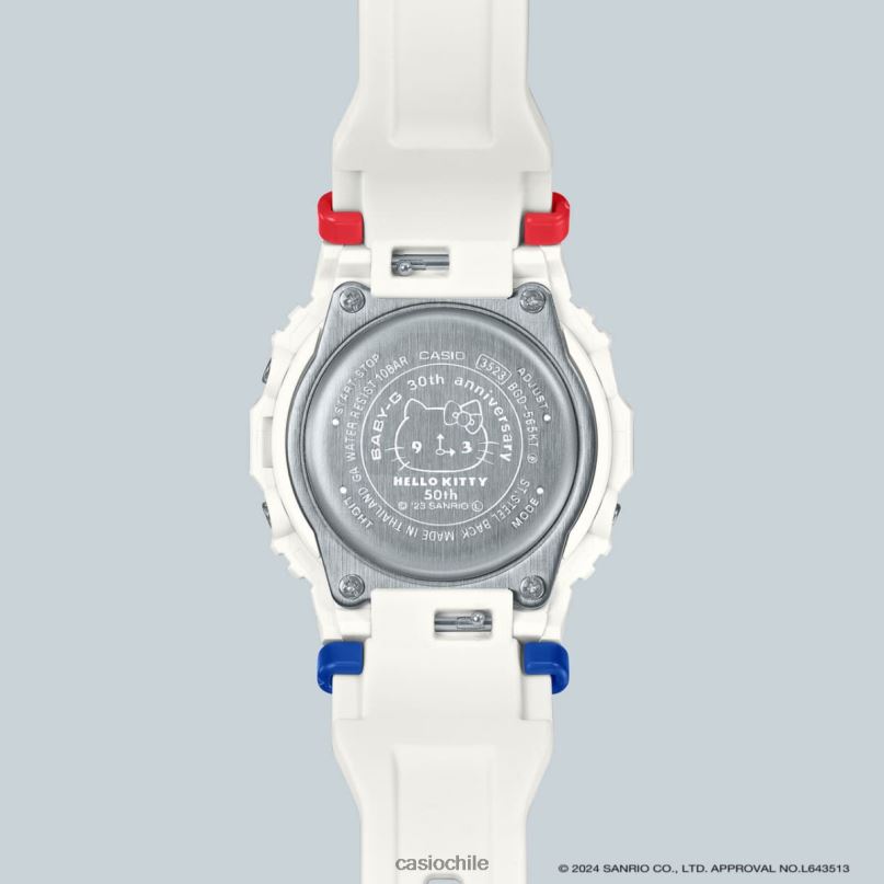 presentamos una colaboración muy especial y una doble celebración que conmemora el 30.º aniversario de baby-g y el 50.º aniversario de hello kitty, ambos en 2024. el bgd565, un modelo clásico de baby-g de primera generación, ahora adquiere los colores blanco, rojo y esquema de color azul del debut de hello kitty en 1974. la banda está cubierta con caras impresas del encantador personaje animado de la década de 1970: hello kitty riendo, guiñando un ojo, sorprendida y triste. Active la luz para ver la esfera del reloj cobrar vida cuando su rostro emerge, rematado por el icónico motivo de cinta en la esfera. el fondo de la caja está grabado con un diseño original de hello kitty que invierte el motivo con manecillas y números adornando su esfera. este baby-g presenta un total de 50 detalles de hello kitty en celebración de su 50 cumpleaños. Los anillos de la banda roja y azul, así como el detalle de la cinta troquelada en el lazo de la banda blanca, añaden extra extravagancia al encantador diseño. La banda está hecha de resinas de base biológica derivadas de recursos orgánicos renovables, que sonSe espera que reduzca el impacto ambiental. El embalaje especial está diseñado en colores a juego y presenta el diseño original de Hello Kitty para complacer a los fans más apasionados. 2024 sanrio co., ltd. número de aprobación l642579