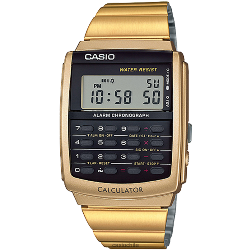 calculadora hora dual 1/100 segundo cronómetro alarma resistente al agua
