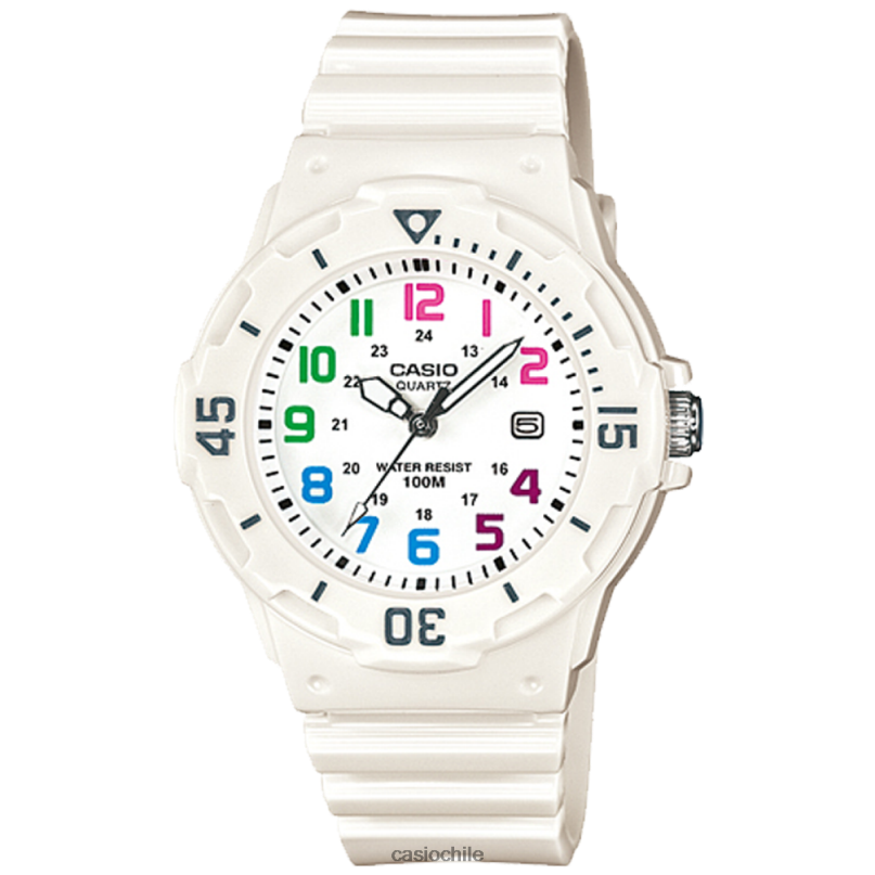 Bisel giratorio resistente al agua hasta 100 metros, visualización de la fecha a las 3 en punto, apariencia de buzo con un diseño pop