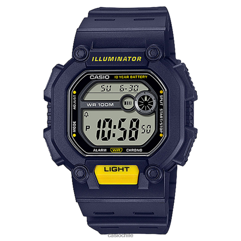 Duración de la batería de 10 años Resistencia al agua de 100 metros Retroiluminación LED Cronómetro de 1/100 segundo Alarma diaria de hora dual
