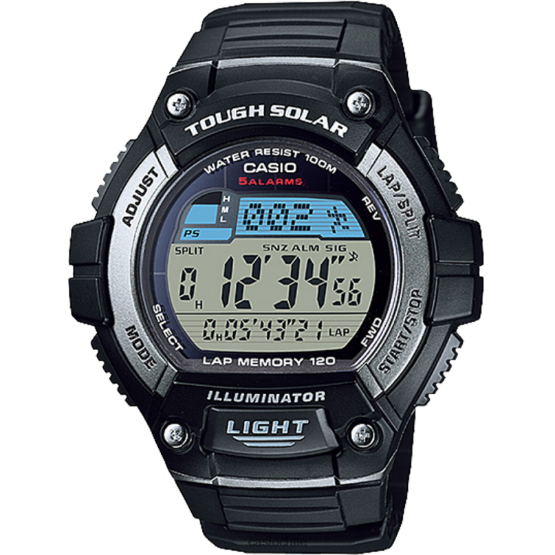 casio solar resistente con energía solar y diseño deportivo memoria de vuelta Cronómetro de 120 1/100 segundos hora mundial 5 alarmas luz LED Resistencia al agua de 100 metros Esfera fácil de leer y botón frontal grande