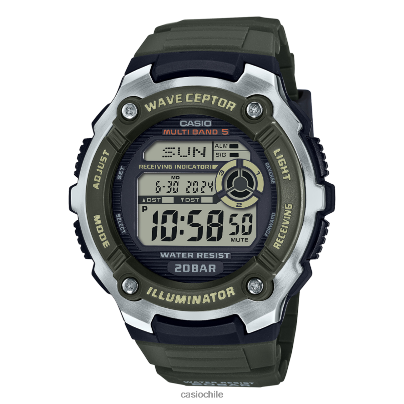 Rendimiento de cronometraje atómico autoajustable en una caja multitarea resistente al agua hasta 200 m. Además de las funciones de cronometraje atómico, cronómetro y temporizador de alarma, la gran pantalla LCD tiene la capacidad de mostrar el día de la semana en 9 idiomas diferentes (eng, esp, fra, por, deu, ita, chn, pyc, jpn). Combine esto con la hora mundial de 48 ciudades, 12/24 horas. formatos y estarás listo para viajar por el mundo.