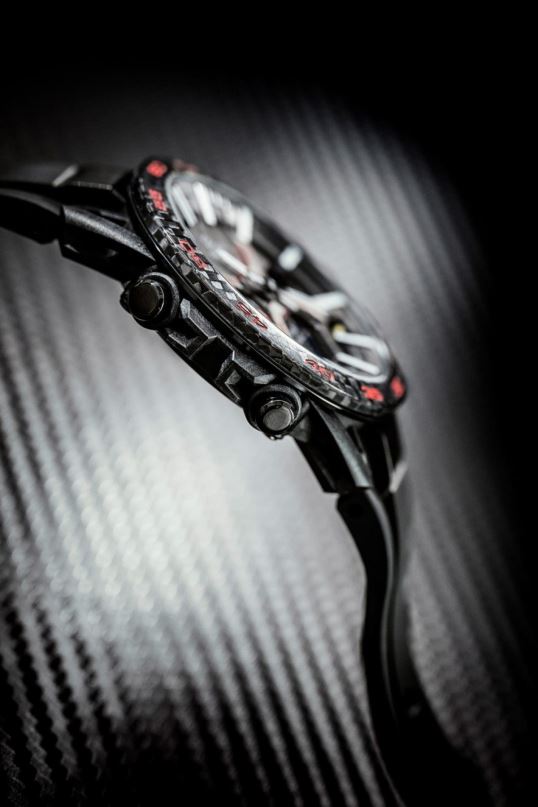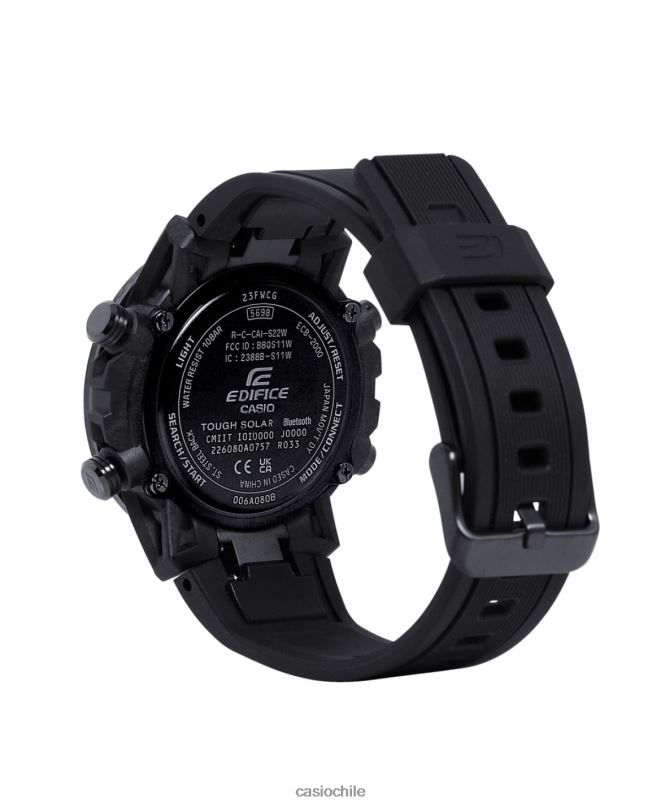 tome el control de la velocidad y la inteligencia con un edificio de combinación analógico-digital impulsado por energía solar. Inspirado en la suspensión de un automóvil de fórmula, la sospensione ecb-2000 es el primer edificio con una carcasa de resina reforzada con fibra de carbono, gracias a un diseño de carcasa único. que dispone las orejetas en una configuración de cuatro brazos. Las asas también están reforzadas con fibra de carbono, aportando el verdadero espíritu deportivo tanto al diseño como a los materiales de este reloj. Es muy fácil sincronizarlo con su teléfono inteligente a través de Bluetooth. acceda a la aplicación dedicada para acceder al cronometraje de precisión de segundos que es tan importante para los equipos de carreras, y para administrar sin esfuerzo la hora mundial y transferir datos del cronómetro medidos al milisegundo a su teléfono inteligente. la luz LED súper iluminadora hace que ver la cara analógica-digital no sea un problema, y ​​el resistente sistema solar lo mantiene cargado y ejecutando incluso funciones de alta carga con solo una pequeña cantidad de luz.