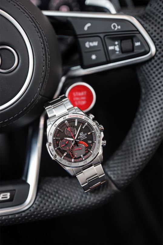 enlace de teléfono inteligente | cronógrafo súper delgado de alta especificación | con energía solar | A pesar de ser un cronógrafo de múltiples agujas de alta especificación con conexión a un teléfono inteligente a través de Bluetooth y estar equipado con un sistema solar resistente, que se carga incluso con poca luz, este modelo cuenta con una caja delgada de 8,9 mm para mejorar su portabilidad. Las características principales incluyen el sistema de hora precisa que se vincula automáticamente a un teléfono inteligente cuatro veces al día a través de Bluetooth para corregir la hora, y la hora mundial que permite a los usuarios seleccionar ciudades entre aproximadamente 300 ciudades en la aplicación del teléfono inteligente. El cronómetro, que tiene una memoria de 200 vueltas, transfiere los datos de medición a un teléfono inteligente, donde se registran a través de la aplicación en unidades de 1/1000 de segundo. también está equipado con un indicador de última vuelta, que muestra la diferencia de tiempo entre la última vuelta y la anterior.