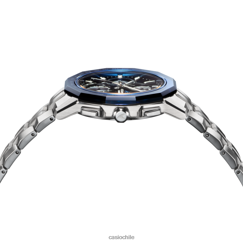 con elegancia y tecnología como concepto de marca, oceanus manta persigue acabados de alta calidad y formas delgadas y hermosas. El ocws6000 está equipado con un grueso cristal de zafiro y diseñado con un exclusivo bisel poligonal de 24 facetas. La deposición de vapor y un proceso de pulverización se realizan numerosas veces para lograr una gradación azul-negra en el bisel que emite una sensación de transparencia desde todos los ángulos. adornado con un acabado fino en la parte superior, un acabado de espejo en ambas pendientes laterales y un tratamiento de carburo de titanio de alta resistencia al desgaste proporciona un brillo plateado brillante en la caja y la correa. Además de la corrección de la hora mediante el propio reloj mediante la función de recepción de ondas de radio multibanda 6, el reloj también está equipado con una función de corrección de la hora mediante un enlace de teléfono inteligente a través de Bluetooth. el reloj puede ajustarse fácilmente a la hora mundial de aproximadamente 300 ciudades y cambiar automáticamente la zona horaria y el horario de verano. El Oceanus Manta de alta calidad es la cima de la funcionalidad y el diseño..