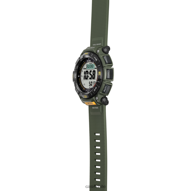 salga al aire libre con un pro trek impulsado por energía solar y con materiales ecológicos que cuidan el medio ambiente. La línea pro trek de auténtico equipo para actividades al aire libre para amantes de la naturaleza presenta el prg340, un reloj que incorpora materiales biológicos respetuosos con el medio ambiente. a base de resina* y al mismo tiempo ofrece el mismo ajuste cómodo para su muñeca. la caja y la correa de uretano están hechas de resina de base biológica hecha con aceite de ricino y la correa de resina de base biológica hecha con maíz. La pantalla LCD dúplex presenta capas separadas para los gráficos de la brújula y las funciones del reloj, lo que permite una pantalla de brújula más grande para mejor legibilidad y navegación más sencilla en un diseño que es a la vez funcional y hermoso. el bisel giratorio simplifica el registro de las lecturas de la brújula y el resistente sistema de carga solar mantiene la funcionalidad avanzada mientras viaja. ¡Salga y explore con una huella más suave!* La resina de base biológica son polímeros producidos mediante síntesis química o biológica de materiales de origen. de materia vegetal ootras sustancias orgánicas renovables y se cree que ayudan a reducir el impacto ambiental y promover el cambio hacia una economía circular.