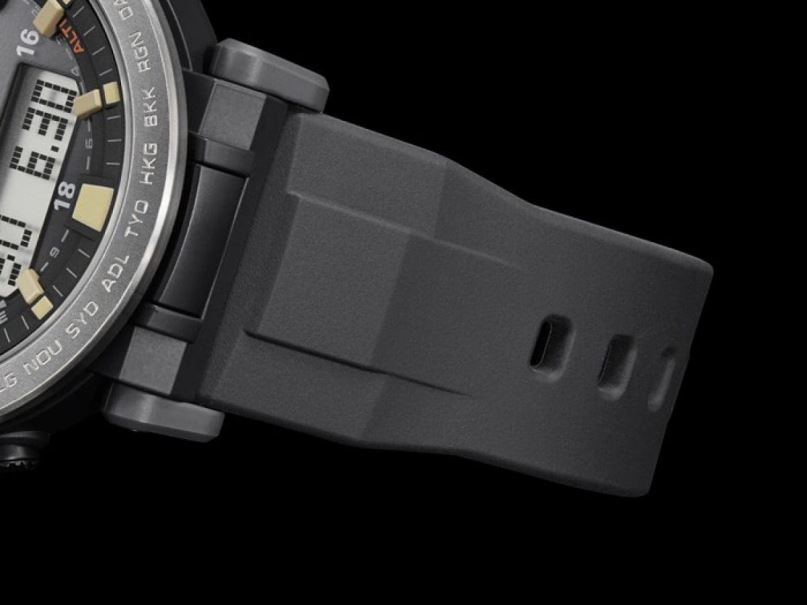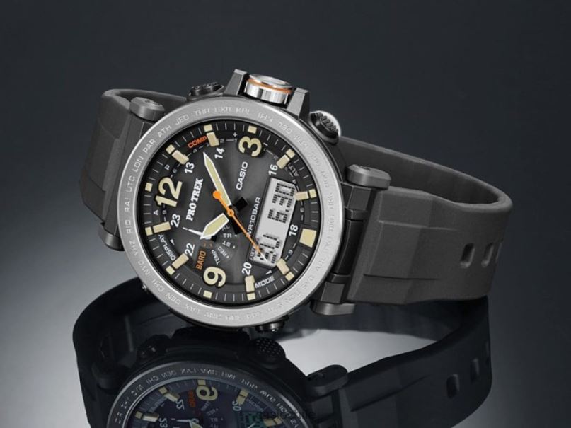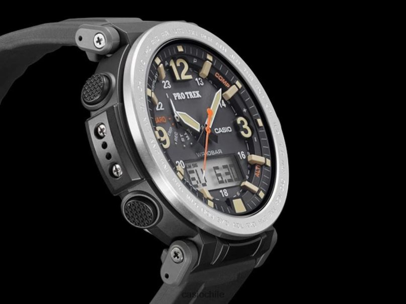 un modelo de pro trek equipado con triple sensor ver.3 diseñado para uso exterior y diario. Se utilizan índices árabes en negrita para las letras de las horas a las 12, 3 y 9 en punto, y un bisel de acero inoxidable grueso y potente para el bisel. El diseño simple y de alto contraste crea un reloj para exteriores que también es bueno para el uso diario. También utiliza un cristal líquido stn de alta visibilidad. Se utiliza un material de silicona suave para la correa y la orejeta se puede mover para mejorar la portabilidad. En términos de funcionalidad, está equipado con un sensor triple que puede medir la dirección, la altitud/presión atmosférica y la temperatura, botones de medición directa que permiten la medición con un solo toque y energía solar resistente. un modelo muy funcional que brilla en el panorama de la moda.