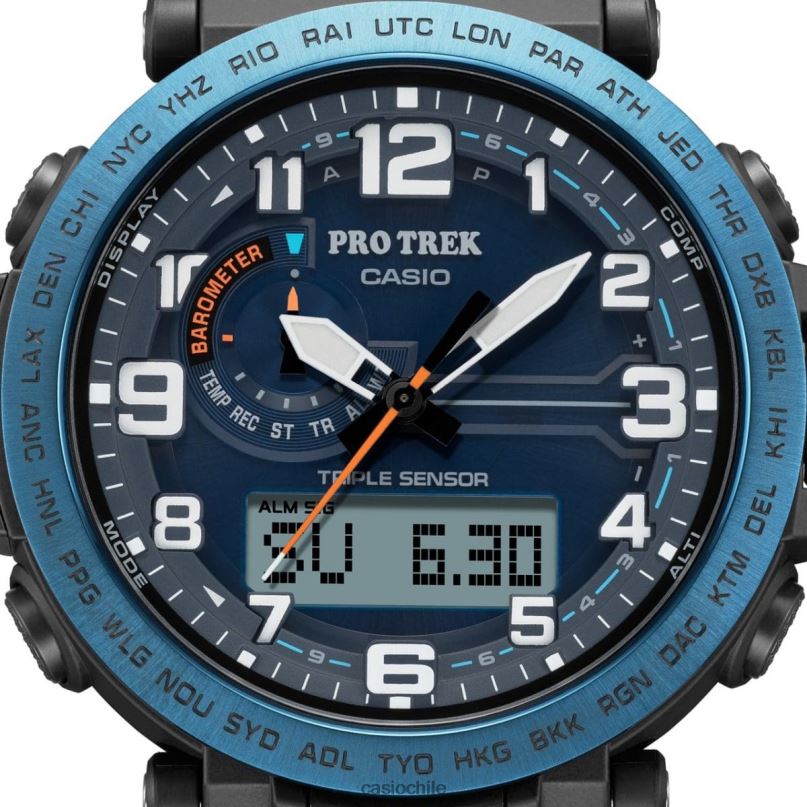 Sea atrevido. ¡Explora el aire libre! obtenga el pro trek prg-601yb con correa de tela, que incluye materiales que se espera que reduzcan el impacto ambiental y números de índice grandes y en negrita para una fácil lectura. El sensor triple de brújula digital, barómetro/altímetro y termómetro le ayuda a estar al tanto de los cambios en el entorno natural, mientras que la resistente energía solar convierte la luz en la energía necesaria para alimentar el reloj. Los números índice en relieve de la esfera están audazmente equilibrados con un amplio bisel de acero inoxidable con baño de iones. Los componentes de resina utilizados para la caja y el fondo de la caja están hechos con materiales de resina de origen biológico, y la banda de tela está hecha con materiales de botellas de plástico recicladas. Se espera que estos materiales reduzcan la huella ecológica de este reloj. Combinando la estética simple de un reloj con la resistencia de un auténtico equipo para actividades al aire libre, este reloj te respalda ya sea que estés en la ciudad o en la naturaleza.