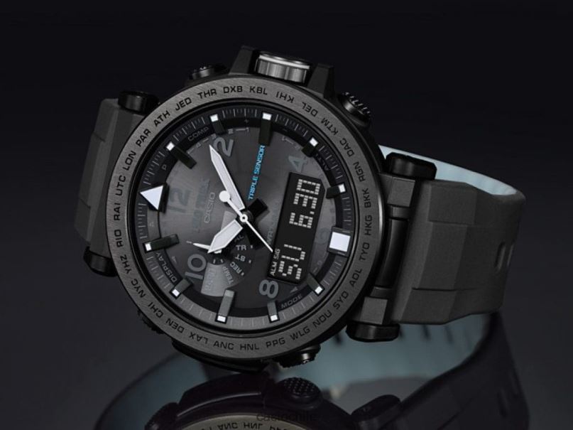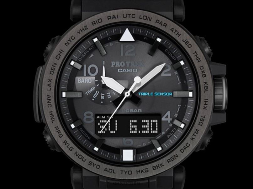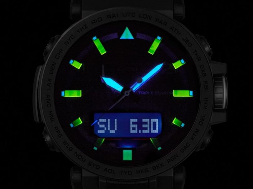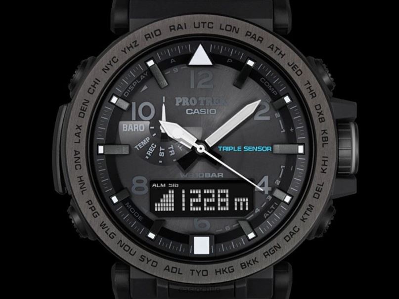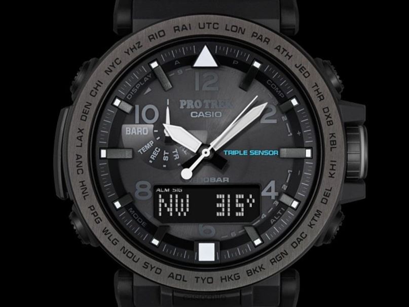 Presentamos nuevos modelos conceptuales de safari nocturno para la línea de modelos Pro Trek de triple sensor versión 3. Los colores y diseños de estos tres nuevos modelos fueron especialmente seleccionados para la escena nocturna al aire libre. El exterior de las bandas y las caras de Los tres modelos son negros. Los diseños de estos modelos son elegantes y discretos, sin sacrificar la legibilidad requerida durante las actividades nocturnas. Los modelos prg-650y/650 vienen con bandas dura-soft que incorporan materiales de silicona que mejoran la durabilidad. El interior de la banda es luminiscente, por lo que emite un brillo tenue durante las actividades nocturnas. Los modelos prg-650y/650ybe cuentan con biseles con baño de iones. En cuanto a las funciones, los tres modelos están equipados con un iluminador de neón para facilitar la lectura de la hora y los modos de funcionamiento, incluso en la oscuridad. Otras funciones básicas incluyen sensor triple (rumbo, altitud/presión barométrica, temperatura), botón de medición de un toque, energía solar resistente y más. Los componentes de orejetas móviles contribuyen a un mejor ajuste.Encuentre más comodidad. Todo en estos modelos está diseñado y diseñado para crear funciones y diseños para actividades nocturnas al aire libre. acceso inteligente con un interruptor de corona electrónico intuitivo y accionamiento multimotor independiente de manecillas de hora, minutos y segundos para un funcionamiento más suave sensor solar triple resistente (rumbo, altitud/presión barométrica, temperatura) gráfico de presión barométrica alarma de presión barométrica resistente a bajas temperaturas (-10 grados centígrados/14 fahrenheit) banda luminiscente y marcadores de hora