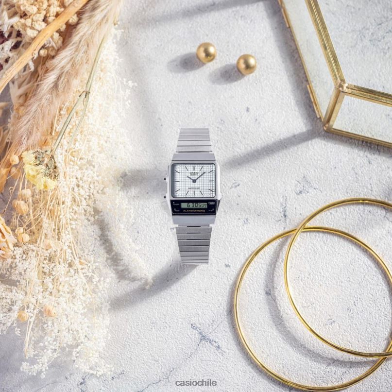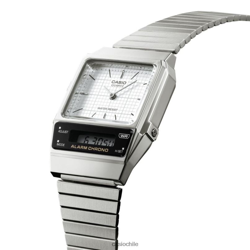 reinicia tu estilo retro vintage con una actualización contemporánea del diseño del aq-450 de los años 80. Este nuevo reloj de estilo vintage es una hermosa combinación de estilo retro y elegante. Una esfera y una pantalla LCD independientes ofrecen belleza analógica junto con rendimiento digital. La pantalla LCD se inclina suavemente para seguir las líneas de las orejetas, mientras que el dial analógico presenta marcas de índice de barra simples. la esfera del reloj adornada con un patrón de cuadrícula agrega el toque final para una verdadera sensación retro. La combinación de la caja angular y los eslabones rectos de la banda de metal es una celebración simple y elegante de la belleza estructural. Más que una simple declaración de moda, estos Los relojes ofrecen funciones prácticas como hora dual, cronómetro y alarma, así como resistencia al agua para uso diario para liberarte de preocupaciones, incluso en días lluviosos.