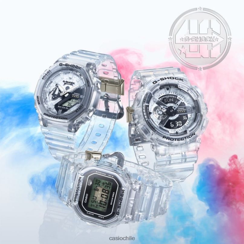 exprésate en términos inequívocos con la línea clear remix del 40.º aniversario de g-shock: diseños populares de g-shock deconstruidos con componentes transparentes para lograr la apariencia más clara hasta el momento. Materiales transparentes para la correa, la caja, la esfera y la pantalla LCD , y los botones brindan una vista detrás de escena del sustrato del módulo impreso con la marca g y el logotipo de g-shock. el fondo de la caja presenta el logotipo número 40 diseñado por Eric Haze y la presilla de la correa está grabada con cuatro estrellas en un guiño a este aniversario especial. Estos detalles y el uso por primera vez de una caja transparente hecha de fibra de vidrio transparente diamida brindan un diseño singular digno de un g-shock excepcional de edición limitada. la nueva línea incluye relojes inspirados en múltiples relojes icónicos de G-shock: el primer g-shock, el dw-5000; el clásico digital dw-5600; el dw-6900 con un distintivo diseño de botones frontales; o el ga-2100/gma-s2100 o el ga-110/gma-s110, que se pueden usar solos o como parte de un conjunto a juego. Estuche transparente: dw-6940rx, ga-114rx, gma-s114rx dial transparente: dw-6940rx, ga-114rx, gma-s114rx, ga-2140rx, gma-s2140rx LCD transparente*: dw-5040rx, dwe-5640rx, dw-6940rxBotones transparentes: ga-114rx, gma-s114rx*La pantalla digital puede resultar difícil de leer en ciertos ángulos de visión debido a los materiales transparentes utilizados para la pantalla LCD.