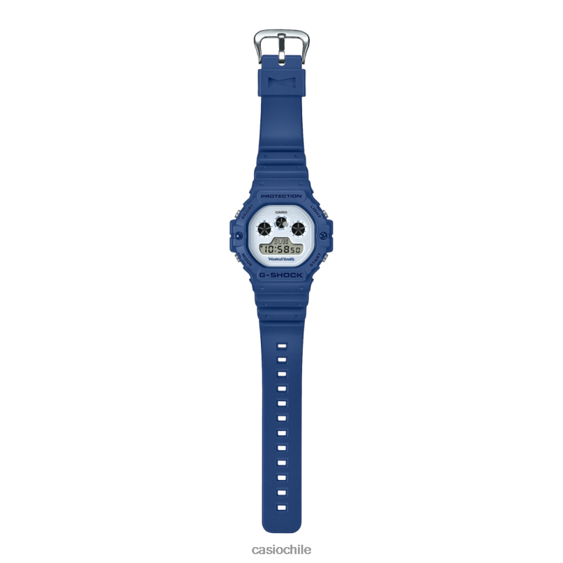 no querrás perderte la colaboración juvenil de g-shock-wasted, la primera con la marca de ropa japonesa mundialmente popular. Este favorito de los fanáticos comienza con el icónico diseño digital dw5900 en azul marino. la cara, en negrita salpicada de blanco, está estampada con el logotipo de la marca que brilla en la oscuridad. presione el botón de luz para ver las letras w.y. aparecen en la pantalla LCD. juventud desperdiciada el mensaje del artista gráfico verdy con su proyecto juventud desperdiciada es que "nada en el viaje para llegar hasta aquí fue un desperdicio". La marca de ropa juvenil Wasted colabora con muchas marcas japonesas e internacionales y frecuentemente sorprende con tiendas pop-up y eventos. la marca no es sólo ropa de calle, sino también un equipo de skate.