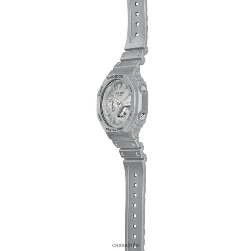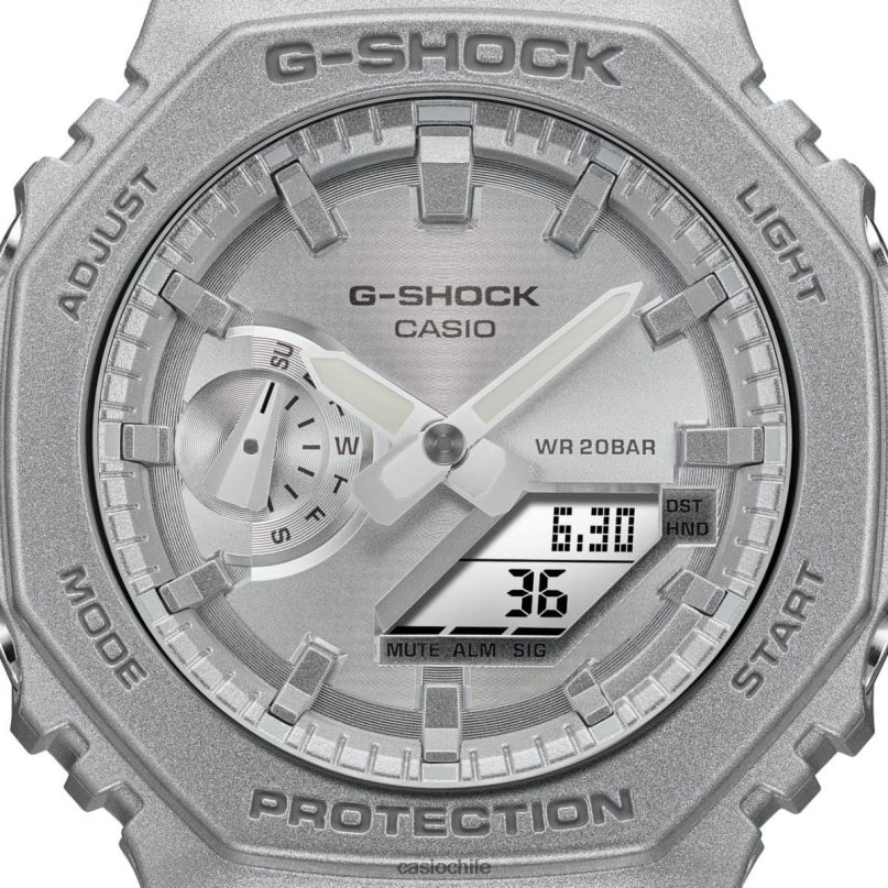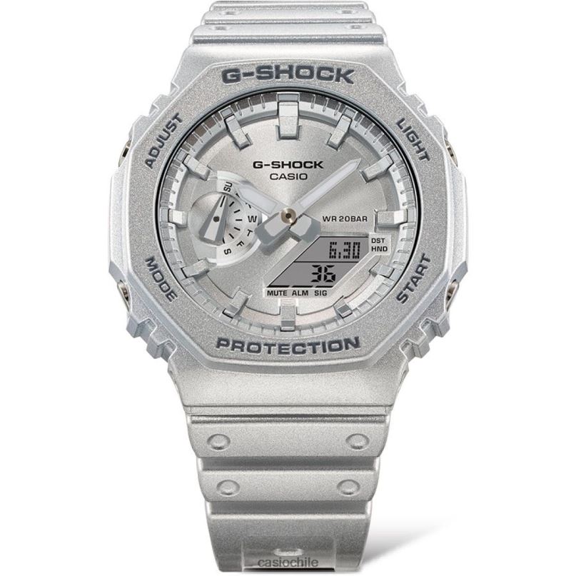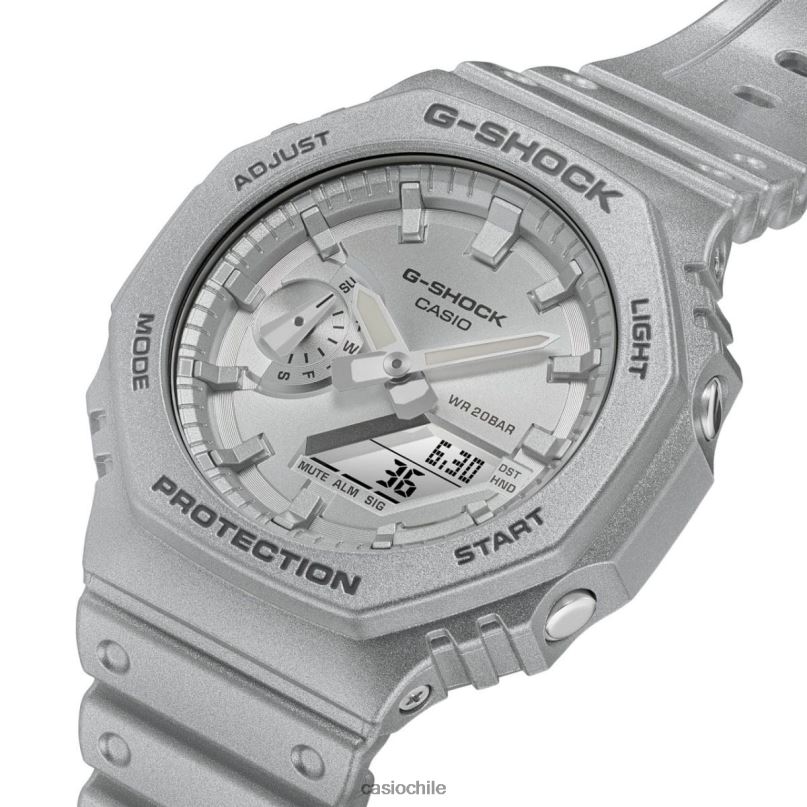 Presentamos el g-shock ga-2100ff-8a, un reloj de nuestra reconocida colección del futuro olvidado. Este modelo combina magistralmente el retrofuturismo y el diseño contemporáneo, ofreciendo una experiencia visual única que se remonta a la estética clásica de la ciencia ficción. Vestido con una pintura plateada metálica en todo el cuerpo, el ga-2100ff-8a ejemplifica el compromiso de g-shock con la innovación y el diseño. . un acabado fino circular en la esfera contrasta maravillosamente con la caja y el bisel relucientes, dándole al reloj un aspecto distintivo y cautivador. Pero el ga-2100ff-8a no se trata solo de apariencia. Fiel al espíritu de G-Shock, está diseñado para ser tan duradero y confiable como elegante. Este reloj es más que capaz de soportar los rigores de la vida cotidiana y al mismo tiempo hacer una fuerte declaración de estilo. Da un paso hacia el futuro de la cronometraje con el g-shock ga-2100ff-8a de nuestra colección del futuro olvidado. esto no es sólo un reloj; es una fusión de imaginaciones pasadas e innovaciones futuras.