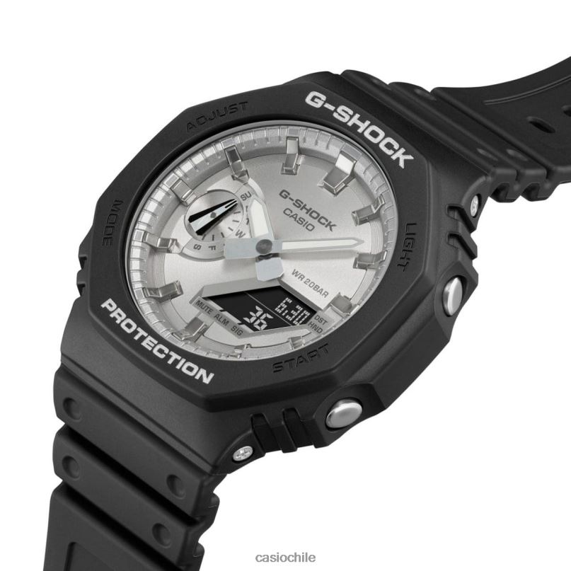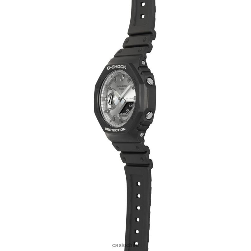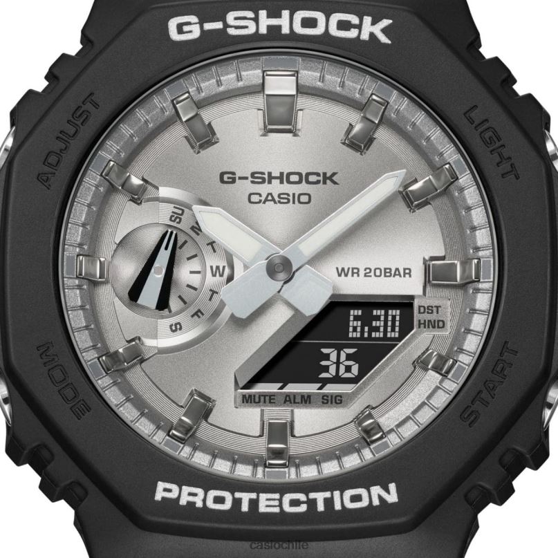 Vaya con un revestimiento metálico en un color fresco y sofisticado con un ga2100 delgado que hereda el concepto de diseño del primer g-shock. El brillo pulido del color metálico y la icónica forma octogonal del dw-5000c, el g-original. shock, se unen en un resistente reloj combinado digital analógico que mide solo 11,8 mm desde el bisel hasta el fondo de la caja. un diseño delgado con la misma construcción resistente de G-shock. Con un hermoso acabado con un tratamiento de línea fina circular, la esfera también está tratada con deposición de vapor de color plateado, al igual que las marcas de índice. agregue un bisel y una banda en negro mate para obtener un reloj que hace una declaración audaz y elegante.