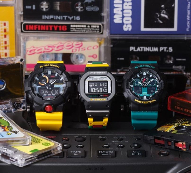 regrese a una época en la que las cintas mixtas eran lo último, con un g-shock inspirado en las coloridas etiquetas de los casetes. Los rojos, amarillos, verdes y negros vibrantes evocan la cinta de casete: un grato recuerdo para quienes la vivieron y ahora son Un nuevo descubrimiento para una nueva generación: una línea de relojes analógicos-digitales clásicos que son tan llamativos como nostálgicos. Elija su favorito: el clásico digital dw5610, el ga100 con caja grande o el ga700 con botón frontal diseño.