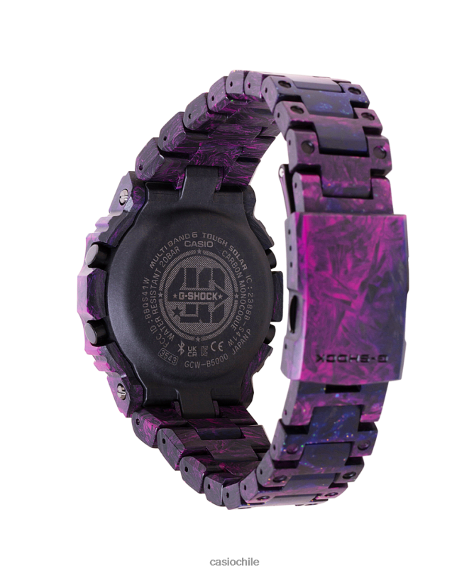 haga una audaz declaración de fuerza y ​​celebre la búsqueda de la máxima resistencia con la edición de carbono del 40 aniversario de G-SHOCK de edición limitada. La evolución de G-SHOCK desde el debut del primer dw5000 es una historia de avance constante funcionalidad, rendimiento y materiales, todo ello manteniéndose fiel al querido diseño del original. La edición de carbono del 40 aniversario retoma esta búsqueda con tres materiales de carbono diferentes utilizados para el bisel, la correa y la caja monocasco. El bisel y la correa están hechos de carbono forjado, que se puede moldear en formas complejas. El brazo plegable del cierre está hecho de carbono multicapa, que cuenta con un alto grado de resistencia a la flexión longitudinal. La caja monocasco de carbono está fabricada con resina reforzada con fibra de carbono. Se presta apasionada atención a las características específicas de cada material producido con una determinada técnica. Se selecciona el material adecuado para cada componente, aprovechando la ligereza y la alta rigidez del carbono.para crear un reloj fuerte, liviano y cómodo. Inspirados en la apariencia textural única del carbono forjado utilizado para el bisel y la correa, los esquemas de color evocan la magnífica banda de luz nebulosa de la Vía Láctea. Se ofrecen dos opciones de color: el gcwb5000un-1 está revestido con un patrón de mezcla de negro y gris, mientras que el gcwb5000un-6 combina fibra de carbono negra con resina de color azul y rosa y motas de ópalo para una apariencia misteriosa. también en la funcionalidad. Descargue la aplicación dedicada para emparejarla con su teléfono inteligente a través de Bluetooth. Con control de radio multibanda 6 para un cronometraje automático de precisión, resistente sistema de carga solar, retroiluminación LED totalmente automática de alto brillo, hora mundial, visualización del día en seis idiomas y cristal de zafiro resistente a rayones, este reloj lo mantiene al máximo rendimiento. El monocasco de carbono La caja, grabada con el logotipo diseñado por Eric Haze para conmemorar el 40 aniversario, añade el toque final a una incomparable edición limitada.n celebración de g-shock. debido a las características del carbono forjado, que es una mezcla de fibra de carbono y resina, el patrón, el tono de color y la distribución del polvo de ópalo en la superficie de cada parte (bisel, correa y cierre) varía de un modelo a otro.*El polvo de ópalo no está incluido en el cierre.