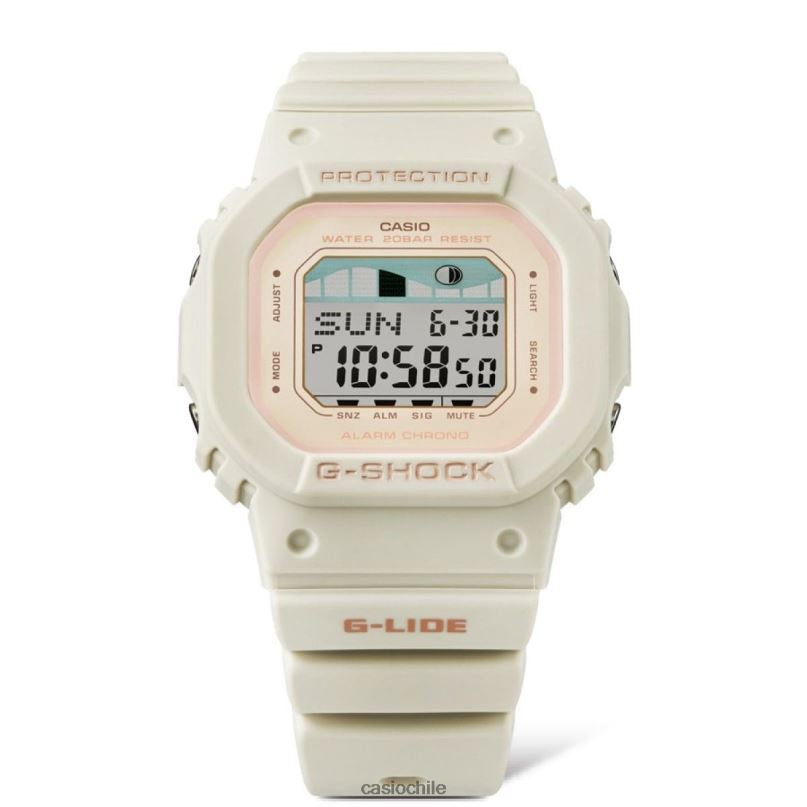 Presentamos un reloj deportivo G-lide más compacto con pantalla de gráfico de mareas. Cómodamente compacto y delgado, este diseño también se inspira en la naturaleza. El bisel y la correa están fabricados con resina ecológica a base de biomasa utilizando recursos orgánicos renovables para reducir el impacto ambiental. Respetuosos con el medio ambiente y funcionales, estos relojes brindan los gráficos de mareas y los datos lunares necesarios para surcar las olas alrededor del mundo, directamente en la muñeca del surfista.