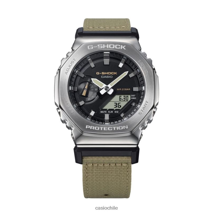 agregue una declaración utilitaria a su estilo con un g-shock de la colección Utility Metal. Estos relojes innovadores toman la icónica forma octogonal y el diseño revestido de metal de la línea gm-2100 y los combinan con una correa de tela resistente en un Color utilitario que combina con cualquier outfit. el sorprendente contraste entre el metal y la tela da como resultado un estilo resistente que tiene que ver con la dureza y la sofisticación informal.
