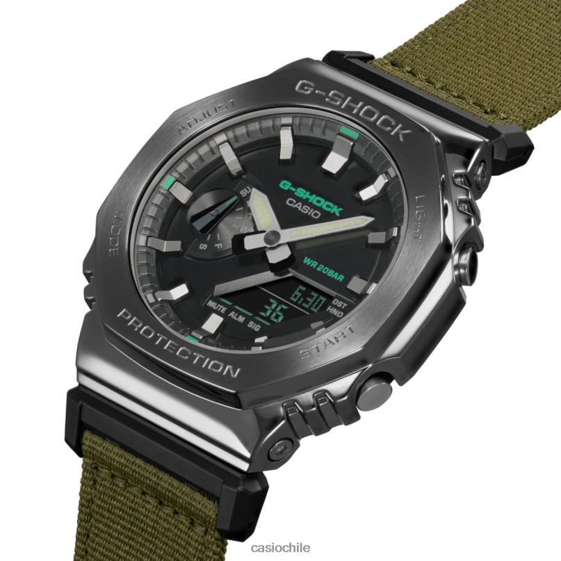 agregue una declaración utilitaria a su estilo con un g-shock de la colección Utility Metal. Estos relojes innovadores toman la icónica forma octogonal y el diseño revestido de metal de la línea gm-2100 y los combinan con una correa de tela resistente en un Color utilitario que combina con cualquier outfit. el sorprendente contraste entre el metal y la tela da como resultado un estilo resistente que tiene que ver con la dureza y la sofisticación informal.