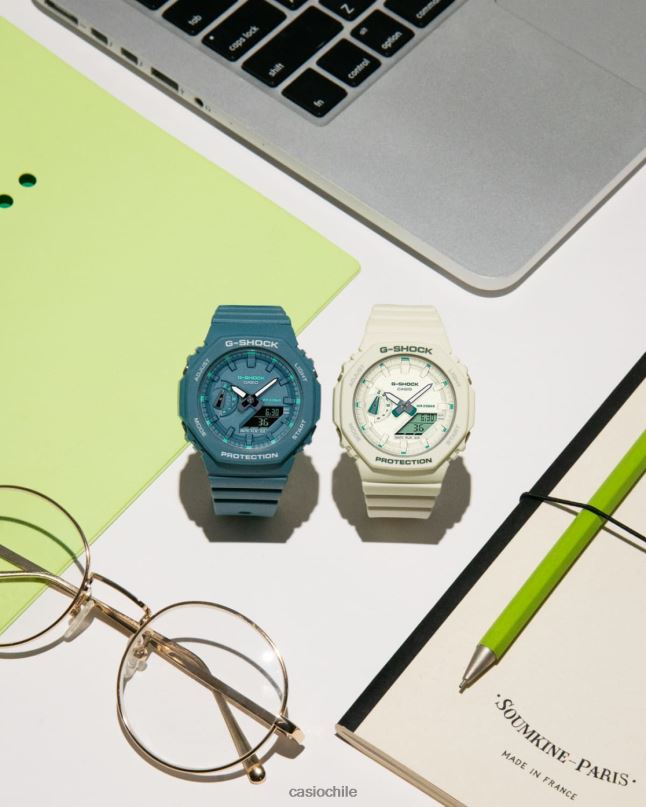 Vaya elegante y cómodo con el gma-s2100 analógico-digital más delgado y compacto que presenta modernos detalles en verde. La cara plana y las simples marcas de índice de barra se combinan en un diseño estilizado y satisfactorio. un toque original en verde de moda para detalles como el logotipo, la marca de índice y la pantalla LCD hacen de este reloj un accesorio perfecto de moda urbana.