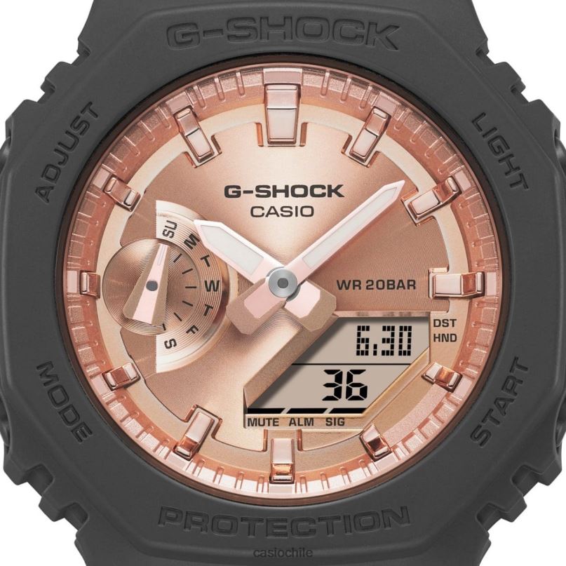 agregue un brillo de individualidad a cualquier conjunto con un toque de oro rosa brillante en su muñeca. Estos relojes gmas2100 cuentan con una esfera plana acabada en deposición de vapor de oro rosa y simples marcas de índice de barra para una apariencia simple, minimalista pero brillante.