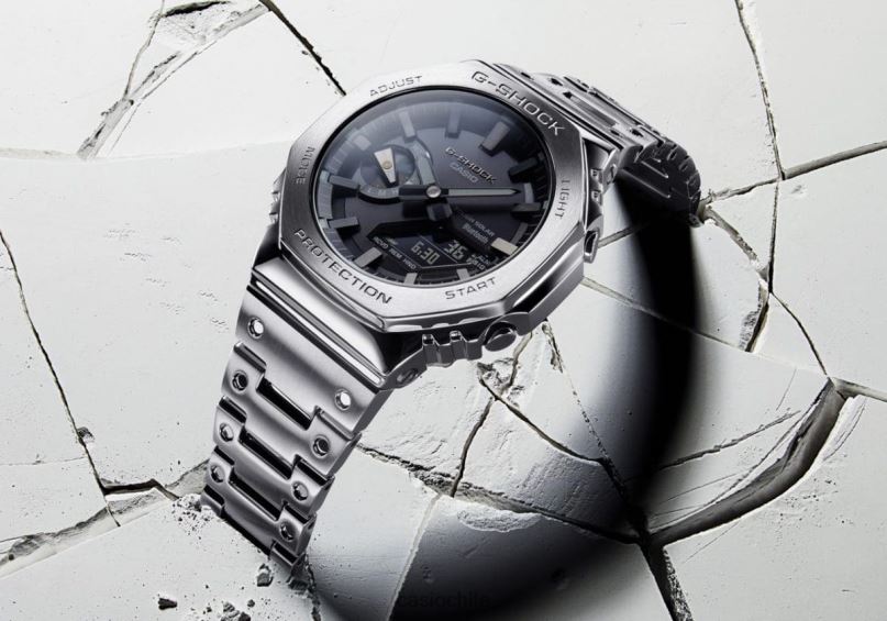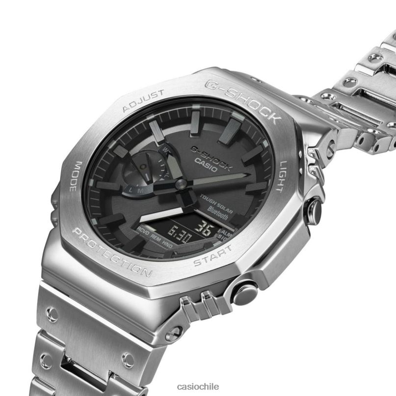 Presentamos la primera incorporación totalmente metálica a la línea de relojes 2100 en constante evolución que hereda el legado del primer g-shock, la construcción totalmente metálica dw-5000c.luxe con caja atornillada, bisel, y la banda fabricada en acero inoxidable crea un diseño minimalista y aerodinámico, al tiempo que protege el módulo del impacto en caso de caída. Lo recuperamos con el bisel octogonal y el diseño de banda con hoyuelos del original de 1983, todo hecho en metal. El montaje de alta densidad mantiene el módulo de combinación analógico-digital delgado, al mismo tiempo que proporciona las funciones avanzadas que usted ama en un perfil compacto y Ajuste cómodo. Se empareja con un teléfono inteligente a través de Bluetooth. simplemente accede a la aplicación dedicada para controlar el tiempo con precisión y mantenerte encaminado. Con energía solar resistente, una luz LED de alto brillo y una variedad de otras funciones convenientes, este es un reloj que ofrece estilo y utilidad práctica.