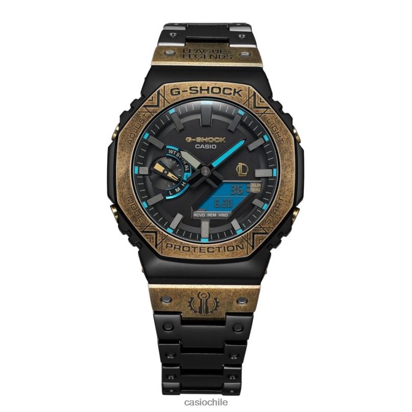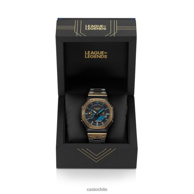 prepárate para una colaboración épica que une a g-shock con el exitoso juego mundial en línea League of legends. Comenzamos con el reloj analógico totalmente metálico gm-b2100 y presentamos la tecnología mágica hextech tan importante para runaterra. mundo en liga de leyendas. El bisel y parte de la banda están acabados con un revestimiento de iones inicial en color dorado, seguido de negro, que luego se elimina parcialmente para crear una apariencia desgastada y envejecida. Los efectivos toques azules en la pantalla LCD y en otros lugares traen la fusión hextech de la magia. ciencia y tecnología al mundo del g-shock. El escudo de armas de Piltover está grabado en una pieza de la banda, evocando la ciudad donde nació esta tecnología mágica. Este modelo de colaboración está repleto de energía de League of Legends, incluido el logotipo del juego en la parte posterior de la caja y un empaque especial diseñado para evocar hextech. league of legends, lanzado en 2009, league of legends es el título debut de riot games y uno de los juegos competitivos más jugados del mundo, que atrae a mMillones de jugadores diariamente en más de 20 idiomas admitidos oficialmente. Un pilar del género moba, en la liga, dos equipos de cinco poderosos campeones se enfrentan para destruir la base del otro en un juego que combina la velocidad, la estrategia y la intensidad de un arte con elementos de rol inmersivos.