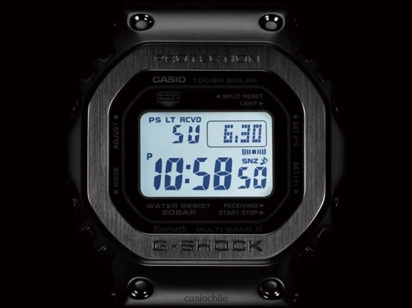El dw-5000c es el modelo g-shock original de 1983. La serie gmw-b5000 heredó su característico diseño cuadrado y recibió el tratamiento metálico completo junto con características mejoradas que incluyen la vinculación con teléfonos inteligentes. Al reloj se le ha dotado de una caja totalmente metálica mediante el uso de un material acolchado de resina fina resistente a los golpes insertado entre la caja y el resistente bisel metálico de acero inoxidable. La tecnología de montaje de alta densidad también permite que el reloj mantenga su tamaño. La parte posterior del reloj cuenta con un sólido cierre de rosca y ha sido tratada con DLC para resistir el desgaste. La banda de metal ha sido procesada con hoyuelos, heredando el diseño de la banda de resina del original. La visibilidad también se ha mejorado mediante el uso de una célula solar de película y stn-lcd (cristal líquido). En cuanto a las funciones, este modelo viene con comunicaciones bluetooth y puede vincularse con una aplicación dedicada para obtener información horaria precisa. El reloj también está repleto de funciones prácticas, incluido un sistema de corrección de hora que utiliza la hora estándar.y señales de frecuencia (multibanda 6), una fuente confiable de energía en forma de tecnología solar resistente, retroiluminación LED totalmente automática de alta luminosidad, visualización de la hora mundial y el día de la semana en seis idiomas. Este es un modelo de G-Shock que se mantiene fiel a su predecesor y al mismo tiempo se somete a un mayor refinamiento mediante la aplicación de un diseño totalmente metálico.