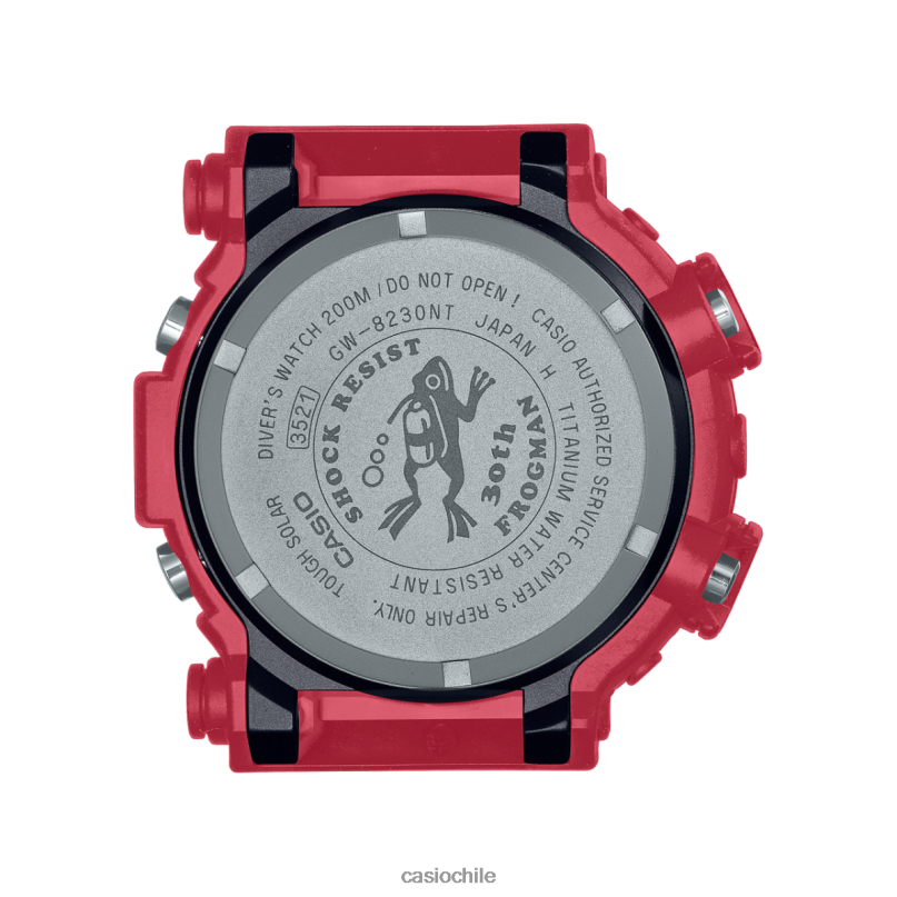 sumérjase profundamente en la celebración del 30.º aniversario de la familia g-shock master of g frogman de relojes de buceo completos con resistencia al agua estándar iso de 200 metros.el tercer modelo conmemorativo para conmemorar los 30 años desde el primero Frogman causó sensación en 1993, este reloj de edición limitada retoma el diseño audaz del debut del dw-8200nt en 2000: la icónica forma asimétrica de frogman con una llamativa banda, bisel y pantalla LCD rojos. Más que un simple resurgimiento, el rediseño evoluciona con un enfoque en la reducción de la huella ambiental. En el bisel y la correa se utilizan resinas biológicas respetuosas con el medio ambiente, y la resistente función solar funciona mediante un panel solar diseñado especialmente para complementar la forma de la esfera del dw-8200. Para este diseño tan especial del 30.º aniversario, la popular rana buceadora tan familiar para los fanáticos del hombre rana está grabada en la parte posterior de la caja y se muestra con luz de fondo LED.