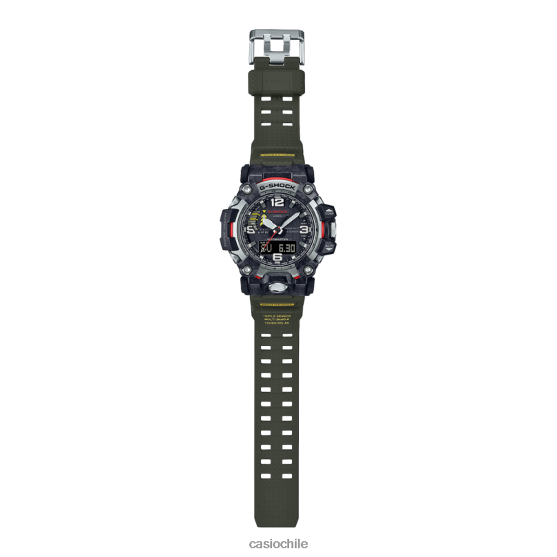 Enfréntate al terreno más difícil con el g-shock mudmaster gwg2000-1a3, diseñado para soportar los entornos terrestres más duros y difíciles. Este reloj resistente a los golpes está diseñado para soportar todo el barro y la arena que tus aventuras puedan traer, y Aprovecha nuestra última tecnología exterior para ofrecer un perfil más pequeño con un ajuste aún mejor. Este diseño compacto es posible gracias al bisel de carbono forjado, la estructura de la caja protectora con núcleo de carbono y los botones resistentes al barro combinados con tubos de acero inoxidable y topes de silicona. La fibra de carbono finamente pulverizada se amasa hasta obtener resina y luego se prensa con calor para moldear un bisel que es más complejo, pero incluso más fuerte que antes. Las mediciones de tres sensores lo mantienen actualizado con lecturas de dirección, altitud, presión barométrica y temperatura. Grandes índices de números arábigos, manecillas extragruesas en forma de flecha, luces LED dobles y cristal de zafiro garantizan una alta visibilidad. la banda tiene una textura similar a las empuñaduras de goma antideslizantes de alta resistencia y los botones están moleteados paraoperación fácil. un mudmaster diseñado para ofrecer practicidad, durabilidad y potencia.