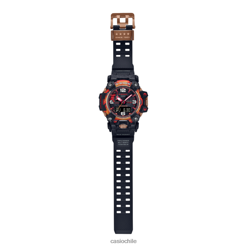 Presentamos el g-shock 40th Anniversary Flare Red: una erupción de color ardiente en dos relojes de edición limitada que celebran el 40.º aniversario del debut de G-Shock en 1983. Inspirado en el intenso poder de la llamarada solar, el mtg-b3000 y el gwg-2000 irradian el negro y el rojo de la marca g-shock, ofreciendo las mejores nuevas tecnologías de casio. Un bisel multicolor con inserción de carbono, elaborado con capas de láminas de carbono y fibra de vidrio que contienen partículas fosforescentes, evoca el enorme poder explosivo del sol. superficie, dando como resultado un reloj que irradia una belleza que brilla en la oscuridad. Los componentes del bisel con diseños individuales y exclusivos (no hay dos iguales) dan como resultado relojes livianos y resistentes, verdaderamente únicos en su tipo. Llévelo aún más alto con los componentes del bisel gwg-2000, hechos de fibra de carbono forjada con partículas fosforescentes para combinar con el bisel con patrones de llamaradas solares que brillan en la oscuridad. Ambos modelos cuentan con un patrón de llamaradas solares impreso en la esfera, así como un diseño de neblina eric.Logotipo de edición que conmemora el 40.º aniversario de G-Shock grabado en el fondo de la caja y cuatro estrellas para 40 grabadas en la presilla de la correa. Estos relojes meticulosamente hermosos y excepcionalmente impactantes son perfectos para iniciar la celebración del 40.º aniversario de G-SHOCK.