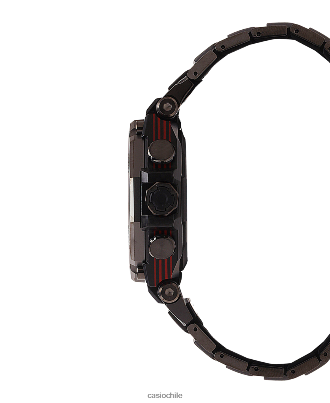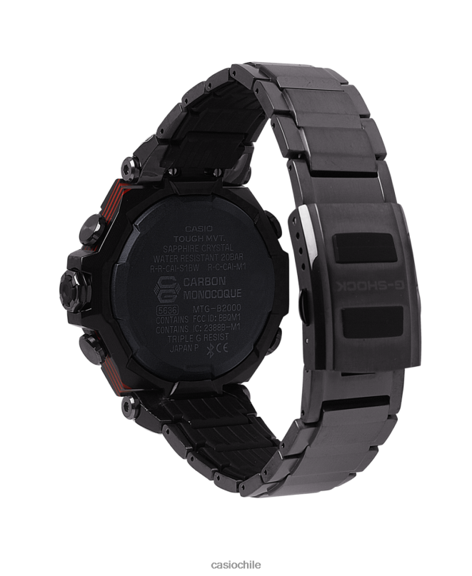 Saluda a la elegante resistencia creada donde se unen el metal, el carbono y la resina. con una caja interior monocasco de resina reforzada con carbono colocada en un marco de carbono en capas para un peso más liviano y un reloj más duradero. 235 láminas de fibra de vidrio y carbono mecanizadas y en capas forman el marco del bisel a los lados del reloj. Estos materiales livianos ofrecen un marco de bisel aproximadamente un 77% más liviano que uno de acero inoxidable. la capa superior de lámina de carbono envuelve los lados en las posiciones de las 3 en punto, 6 en punto, 9 en punto y 12 en punto para mayor resistencia, mientras que la lámina de carbono en forma de tubo rodea los orificios para mayor durabilidad. Las capas de fibra de vidrio en rojo G-Shock brindan un toque de color fuerte alrededor de los lados de la caja.