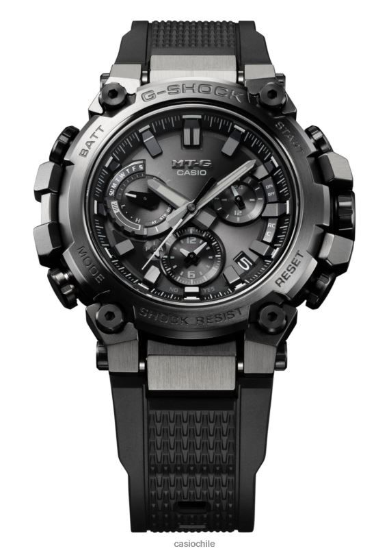 descubra una forma innovadora de gran belleza estructural, un reloj mt-g nacido de un concepto de diseño completamente nuevo que combina la resina utilizada en los primeros modelos g-shock con materiales metálicos. Bienvenido a un nivel completamente nuevo de diseño estructural sofisticado. Con su estructura de protección de doble núcleo aún más avanzada, el mtgb3000 protege el módulo en una carcasa de resina reforzada con carbono y encierra el exterior en componentes metálicos. Al presionar, cortar y pulir repetidamente, la caja de acero inoxidable vuelve a subir en una intrincada forma 3D. El fondo de la caja también sirve como asas para asegurar la correa y como protectores para la corona y los botones, para una estructura completamente nueva. Utilizando tecnología de montaje de alta densidad, desarrollamos un nuevo módulo multifunción más delgado. Todos estos diseños y tecnologías innovadores crearon un reloj mucho más delgado, que mide solo 12,1 mm desde el bisel hasta el fondo de la caja. Cristal de zafiro de alta transparencia combinado con el delicado moldeado y deposición de vapor del nanoproc de Yamagata Casio.La tecnología Essing agrega el toque final de sofisticación y calidad. En un elegante negro monocromático y gris, el mtgb3000b presenta una banda de uretano suave. Este nuevo estilo innovador y resistente también ofrece funcionalidad completa. Descarga la aplicación de relojes Casio para emparejarlo con tu teléfono inteligente a través de Bluetooth. Con multibanda 6, resistente sistema de carga solar y luz LED de alto brillo, este reloj te mantiene al máximo rendimiento, sean cuales sean tus aventuras.