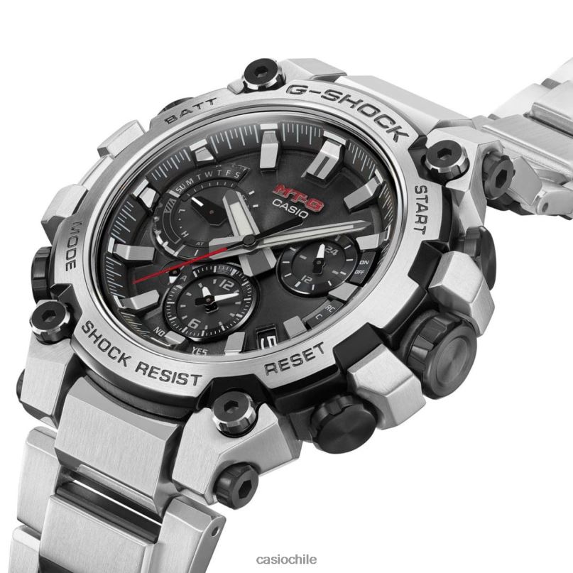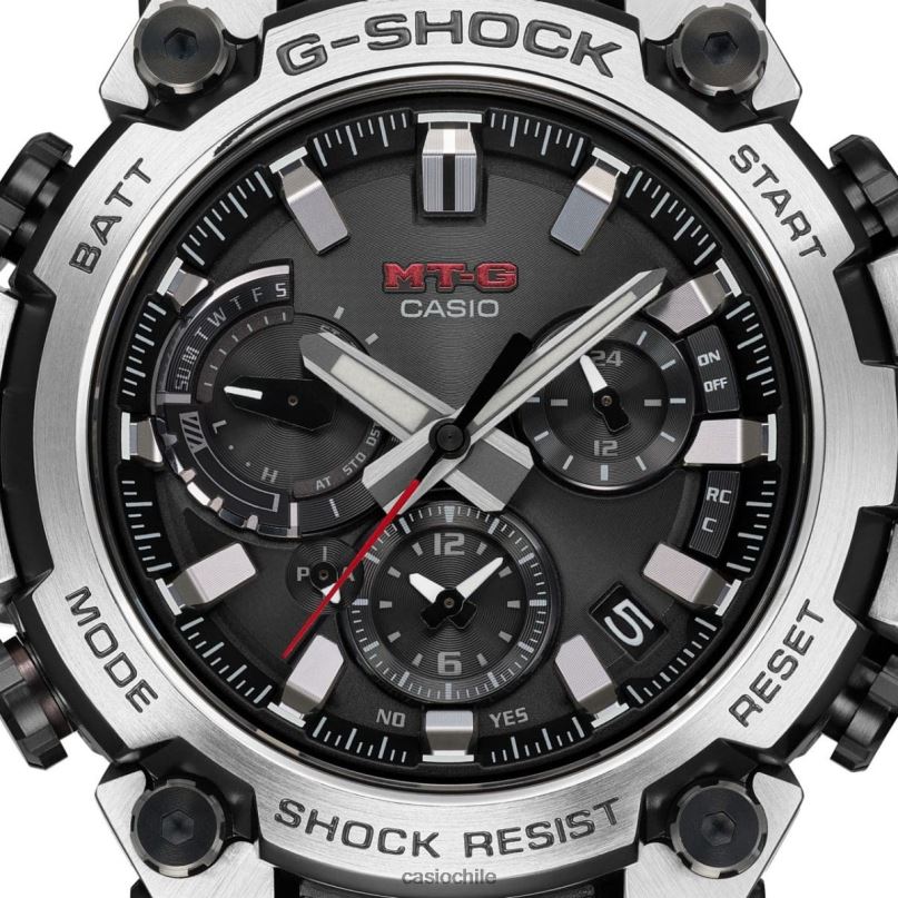 descubra una forma innovadora de gran belleza estructural, los relojes mt-g nacidos de un concepto de diseño completamente nuevo que combina la resina utilizada en los primeros modelos g-shock con materiales metálicos. Bienvenido a un nivel completamente nuevo de diseño estructural sofisticado. Con su estructura de protección de doble núcleo aún más avanzada, el mtgb3000 protege el módulo en una carcasa de resina reforzada con carbono y encierra el exterior en componentes metálicos. Al presionar, cortar y pulir repetidamente, la caja de acero inoxidable vuelve a subir en una intrincada forma 3D. El fondo de la caja también sirve como asas para asegurar la correa y como protectores para la corona y los botones, para una estructura completamente nueva. Utilizando tecnología de montaje de alta densidad, desarrollamos un nuevo módulo multifunción más delgado. Todos estos diseños y tecnologías innovadores crearon un reloj mucho más delgado, que mide solo 12,1 mm desde el bisel hasta el fondo de la caja. El mtgb3000d presenta una banda compuesta en capas aún más liviana hecha de acero inoxidable y resina fina. su acero inoxidableEl bisel tiene un baño de iones en negro y luego se trata con un acabado fino para exponer el acero inoxidable solo debajo de las superficies convexas. Estos detalles meticulosos se combinan para ofrecer un diseño intrincado y sofisticado. Este nuevo estilo innovador y resistente también ofrece funcionalidad completa. Descarga la aplicación de relojes Casio para emparejarlo con tu teléfono inteligente a través de Bluetooth. Con multibanda 6, resistente sistema de carga solar y luz LED de alto brillo, estos relojes te mantienen al máximo rendimiento, sean cuales sean tus aventuras.